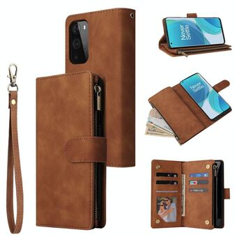 Για OnePlus 9 Pro Πολυλειτουργικό παγωμένο φερμουάρ πορτοφόλι δερμάτινη θήκη τηλεφώνου (καφέ)