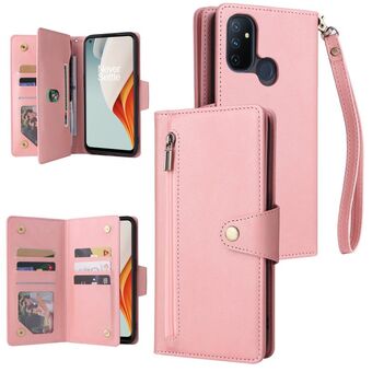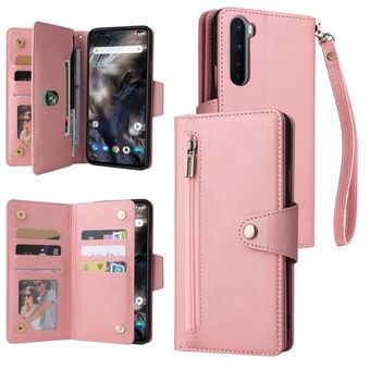 Για OnePlus Nord Rivet πόρπη 9 κάρτες τρεις φορές δερμάτινη θήκη τηλεφώνου (Rose Gold)