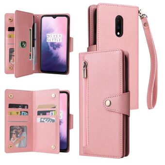 Για OnePlus 7 Rivet πόρπη 9 κάρτες τρεις φορές δερμάτινη θήκη τηλεφώνου (Rose Gold)