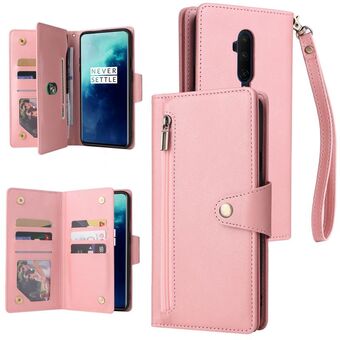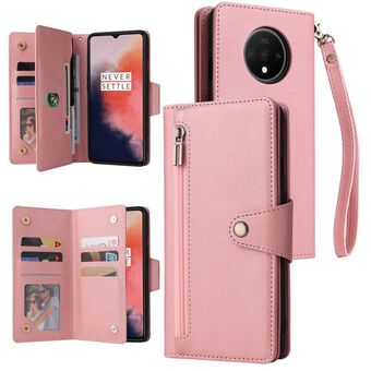 Για OnePlus 7T Rivet πόρπη 9 κάρτες τρεις φορές δερμάτινη θήκη τηλεφώνου (Rose Gold)