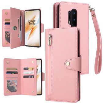 Για OnePlus 8 Rivet πόρπη 9 κάρτες τρεις φορές δερμάτινη θήκη τηλεφώνου (Rose Gold)