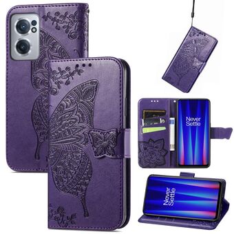 Για OnePlus Nord CE 2 5G πεταλούδα αγάπη λουλούδι ανάγλυφο δερμάτινη θήκη τηλεφώνου (Light Purple)