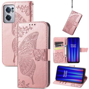 Για OnePlus Nord CE 2 5G πεταλούδα αγάπη λουλούδι ανάγλυφο δερμάτινη θήκη τηλεφώνου (Rose Gold)