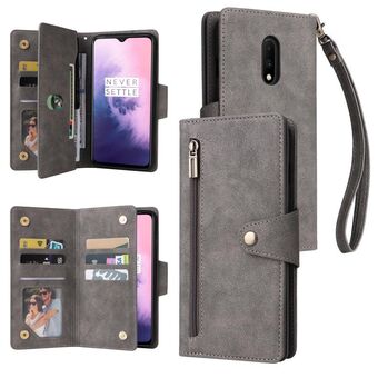 Για OnePlus 7T Rivet πόρπη 9 κάρτες τρεις φορές δερμάτινη θήκη τηλεφώνου (γκρι)