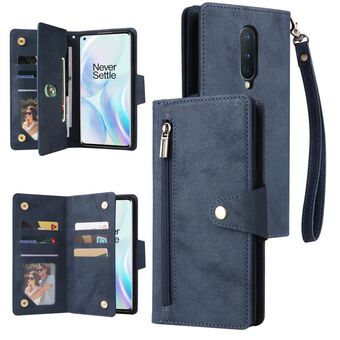 Για OnePlus 8 Rivet πόρπη 9 κάρτες τρεις φορές δερμάτινη θήκη τηλεφώνου (μπλε)