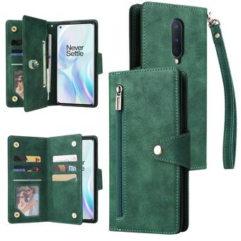 Για OnePlus 8 Rivet πόρπη 9 κάρτες τρεις φορές δερμάτινη θήκη τηλεφώνου (πράσινο)