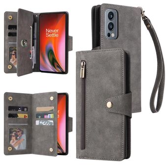Για OnePlus Nord 2 Rivet πόρπη 9 κάρτες τρεις φορές δερμάτινη θήκη τηλεφώνου (γκρι)