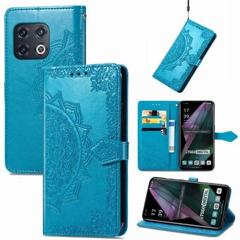 Για OnePlus 10 Pro Mandala λουλούδι ανάγλυφο οριζόντια Flip δέρμα τηλέφωνο υπόθεση (μπλε)