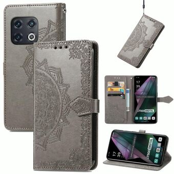 Για OnePlus 10 Pro Mandala λουλούδι ανάγλυφο οριζόντια Flip δέρμα τηλέφωνο υπόθεση (γκρι)