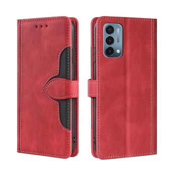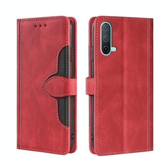 Για OnePlus Nord CE 5G δέρμα αίσθηση αχυρένιο καπέλο μαγνητική πόρπη δερμάτινη θήκη τηλεφώνου (κόκκινο)