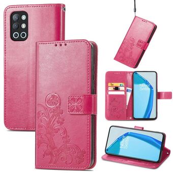 Για OnePlus 9R Τέσσερα φύλλα κούμπωμα ανάγλυφο αγκράφα κινητό τηλέφωνο προστασία δερμάτινη θήκη με κορδόνι & υποδοχή για κάρτες & πορτοφόλι & βραχίονα λειτουργία (Magenta)