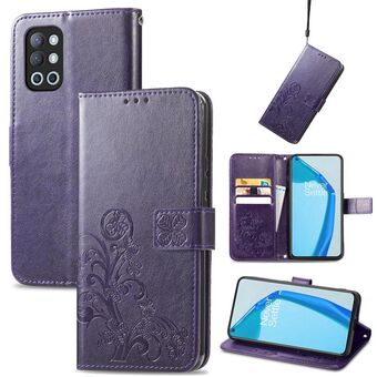 Για OnePlus 9R Τέσσερα φύλλα κούμπωμα ανάγλυφο αγκράφα κινητό τηλέφωνο προστασία δερμάτινη θήκη με κορδόνι & υποδοχή για κάρτες & πορτοφόλι & βραχίονα λειτουργία (μοβ)