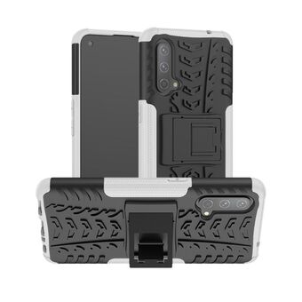 Για OnePlus Nord CE 5G ελαστικών υφή Shockproof TPU + PC προστατευτική θήκη με κάτοχο (λευκό)