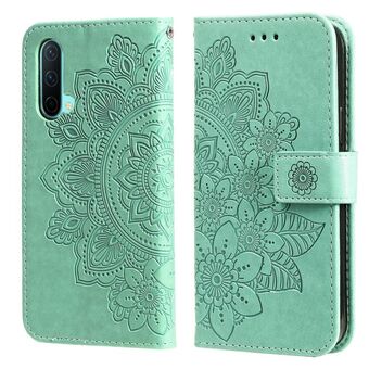Για OnePlus Nord CE 5G 7-πέταλο λουλούδια ανάγλυφο μοτίβο οριζόντια Flip PU δέρμα υπόθεση με κάτοχο & υποδοχές για κάρτες & πορτοφόλι & πλαίσιο φωτογραφιών (πράσινο)