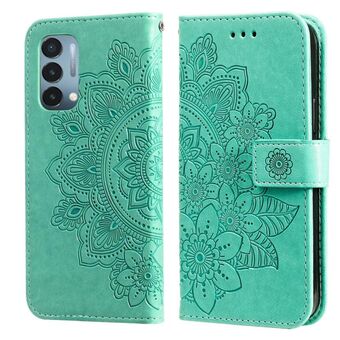 Για OnePlus Nord N200 5G 7-πέταλα λουλούδια ανάγλυφο μοτίβο οριζόντια Flip PU δέρμα υπόθεση με κάτοχο & υποδοχές για κάρτες & πορτοφόλι & πλαίσιο φωτογραφιών (πράσινο)