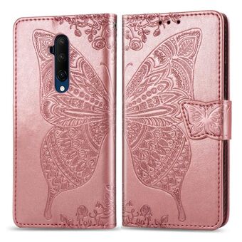 Θήκη δέρματος οριζόντιας αναδίπλωσης για One Plus 7T Pro με ανάγλυφο σχέδιο πεταλούδας, λουλουδιών, με στήριγμα, λουρί καρπού και θήκη για κάρτες (Μπλε)