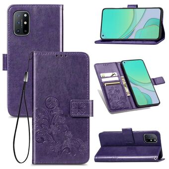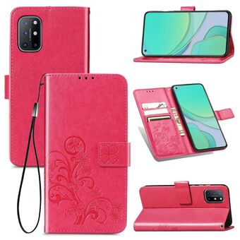 Για OnePlus 8T Θήκη Προστασίας Δερμάτινη για Κινητό με Κούμπωμα Τριφυλλιού, Ανάγλυφο, Λουρί, Θήκη Καρτών, Πορτοφόλι & Λειτουργία Στήριξης (Ματζέντα)