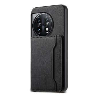 Θήκη τηλεφώνου πλήρους κάλυψης με σχέδιο τσάντας κάρτας με υφή μοσχαριού για OnePlus 11 (Μαύρο)