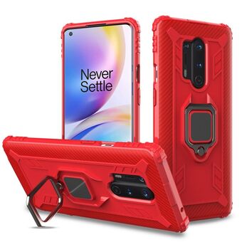 Για OnePlus 8 Carbon Fiber Προστατευτική θήκη με 360 μοίρες περιστρεφόμενο δαχτυλίδι κάτοχος (κόκκινο)