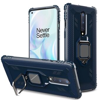 Για OnePlus 8 Carbon Fiber Προστατευτική θήκη με 360 μοίρες περιστρεφόμενο δαχτυλίδι κάτοχος (μπλε)
