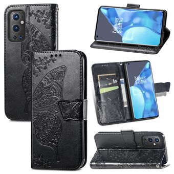 Για OnePlus 9 Pro πεταλούδα αγάπη λουλούδια ανάγλυφο οριζόντια Flip δερμάτινη θήκη με κάτοχο & υποδοχές για κάρτες & πορτοφόλι & κορδόνι (μαύρο)