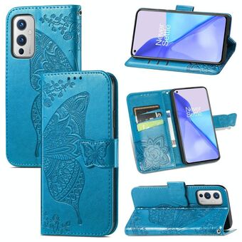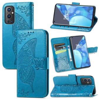 Για OnePlus 9 Pro πεταλούδα αγάπη λουλούδια ανάγλυφο οριζόντια Flip δερμάτινη θήκη με κάτοχο & υποδοχές για κάρτες & πορτοφόλι & κορδόνι (μπλε)