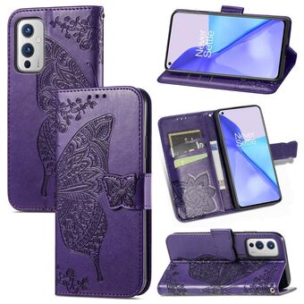 Για OnePlus 9 πεταλούδα αγάπη λουλούδια ανάγλυφο οριζόντια Flip δερμάτινη θήκη με κάτοχο & υποδοχές για κάρτες & πορτοφόλι & κορδόνι (Light Purple)
