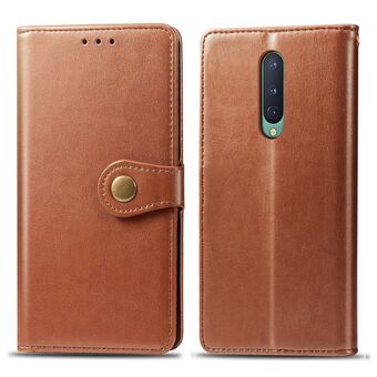 Για OnePlus 8 Ρετρό στερεό χρώμα δερμάτινη θήκη τηλεφώνου πόρπη με κορδόνι & πλαίσιο φωτογραφιών & υποδοχή κάρτας & πορτοφόλι & λειτουργία Stand (καφέ)