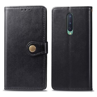 Για OnePlus 8 Ρετρό στερεό χρώμα δερμάτινη θήκη τηλεφώνου πόρπη με κορδόνι & πλαίσιο φωτογραφιών & υποδοχή κάρτας & πορτοφόλι & λειτουργία Stand (Μαύρο)
