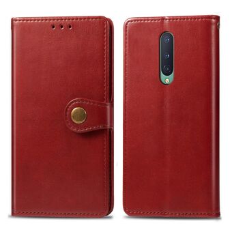 Για OnePlus 8 Ρετρό στερεό χρώμα δερμάτινη θήκη τηλεφώνου πόρπη με κορδόνι & πλαίσιο φωτογραφιών & υποδοχή κάρτας & πορτοφόλι & λειτουργία Stand (κόκκινο)