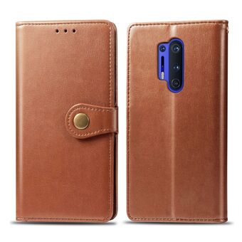 Για OnePlus 8 Pro Ρετρό στερεό χρώμα δερμάτινη θήκη τηλεφώνου πόρπη με κορδόνι & πλαίσιο φωτογραφιών & υποδοχή κάρτας & πορτοφόλι & λειτουργία Stand (καφέ)