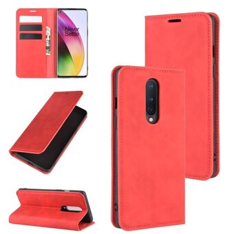Για OnePlus 8 Retro-skin Business Μαγνητική δερμάτινη θήκη αναρρόφησης με θήκη & υποδοχές καρτών & πορτοφόλι (κόκκινο)