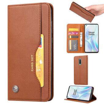 Για OnePlus 8 Knead δέρμα υφή οριζόντια Flip δερμάτινη θήκη με πλαίσιο φωτογραφιών & κάτοχος & υποδοχές καρτών & πορτοφόλι (καφέ)