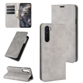 Για OnePlus Nord Retro-skin Business μαγνητική δερμάτινη θήκη αναρρόφησης με θήκη & υποδοχές καρτών & πορτοφόλι (γκρι)