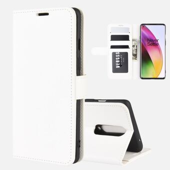 Για OnePlus 8 R64 Υφή ενιαία οριζόντια Flip προστατευτική θήκη με υποδοχή & υποδοχές καρτών & πορτοφόλι & πλαίσιο φωτογραφιών (λευκό)