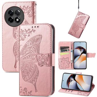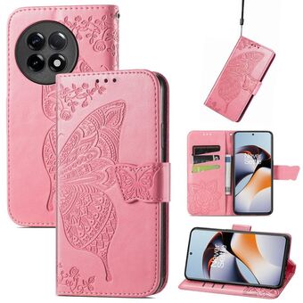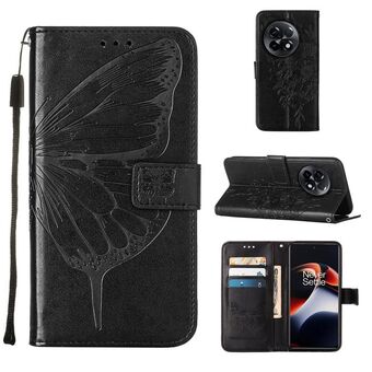 Θήκη τηλεφώνου από δέρμα με ανάγλυφο σχέδιο πεταλούδας για OnePlus Ace 2 5G / 11R 5G (Μαύρο)