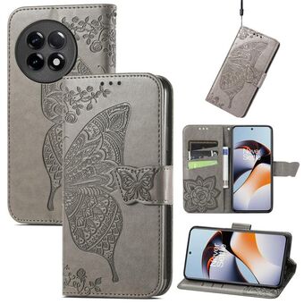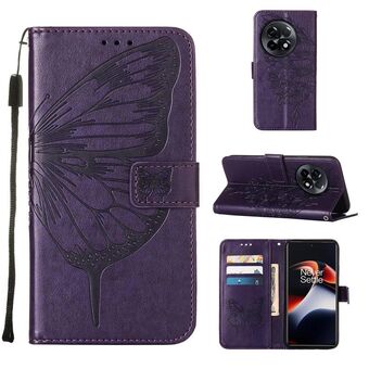 Θήκη τηλεφώνου από δέρμα με ανάγλυφο σχέδιο πεταλούδας και λουλουδιών για OnePlus Ace 2 (Λεβάντα)