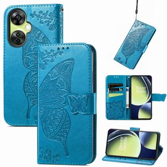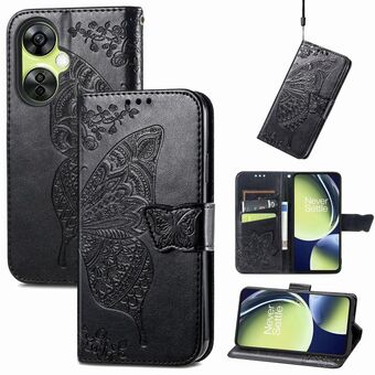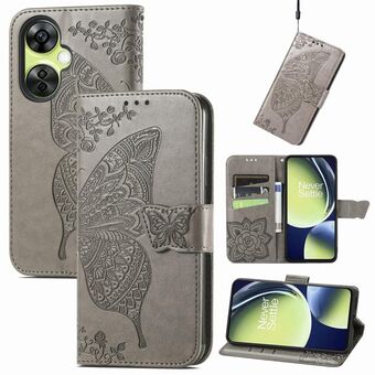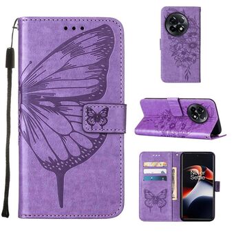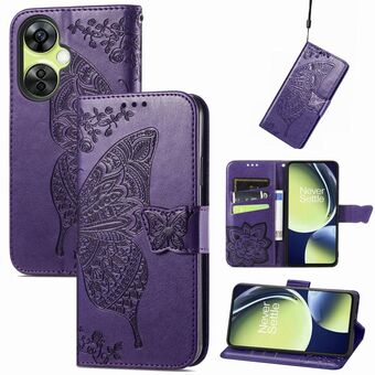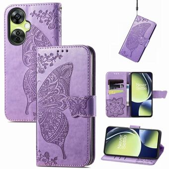 Θήκη τηλεφώνου από δέρμα με ανάγλυφο σχέδιο πεταλούδας και λουλουδιών για OnePlus Nord CE 3 Lite (Λεβάντα)