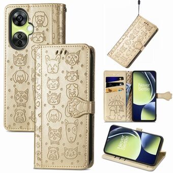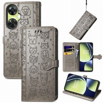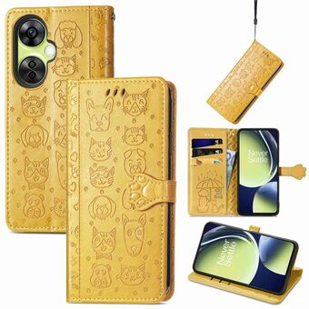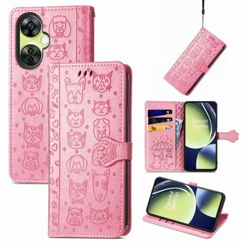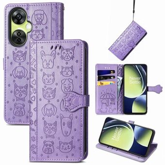 Θήκη τηλεφώνου από δέρμα με ανάγλυφο σχέδιο γάτας και σκύλου για OnePlus Nord CE 3 Lite (Μωβ)
