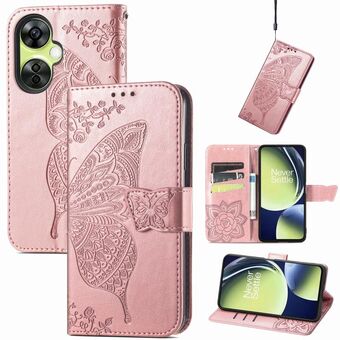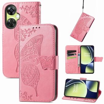 Θήκη τηλεφώνου από δέρμα με ανάγλυφο σχέδιο πεταλούδας και λουλουδιών για OnePlus Nord CE 3 Lite (Χρυσό Ροζ)