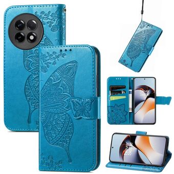 Θήκη τηλεφώνου από δέρμα με ανάγλυφο σχέδιο πεταλούδας και λουλουδιών για OnePlus Ace 2 (Μπλε)