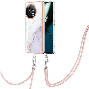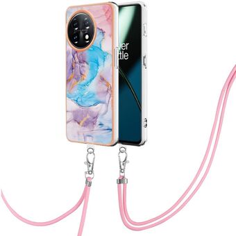 Θήκη τηλεφώνου OnePlus 11 με επιμετάλλωση, σχέδιο μάρμαρου, διπλής όψης IMD με κορδόνι (Μωβ 001)