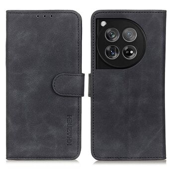 Θήκη τηλεφώνου OnePlus 12 KHAZNEH από δέρμα με ανάγλυφη υφή (Μαύρο)