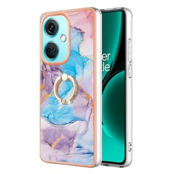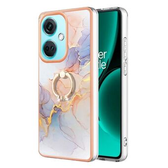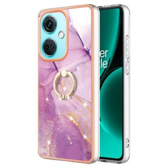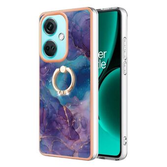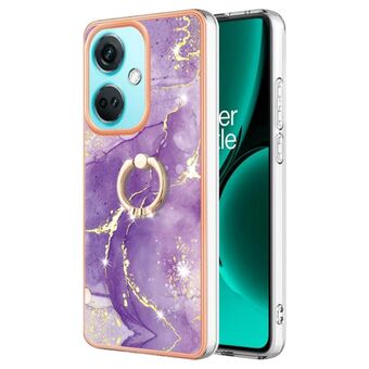 For OnePlus Nord CE 3 Electroplating Marble IMD TPU Phone Case with Ring Holder(Purple 001)