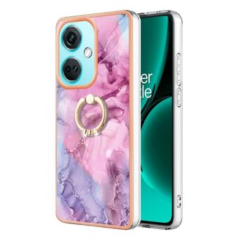 For OnePlus Nord CE 3 Electroplating Marble Dual-side IMD Phone Case with Ring(Pink 013)