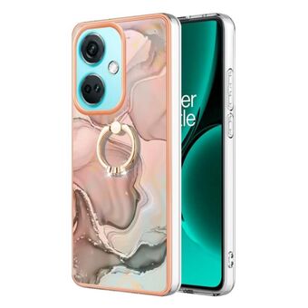For OnePlus Nord CE 3 Electroplating Marble IMD TPU Phone Case with Ring Holder(Rose Gold 005)