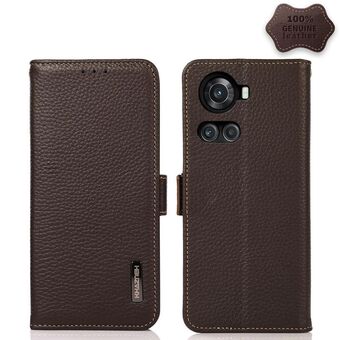 For OnePlus 10R / Ace KHAZNEH Side-Magnetic Litchi Genuine Leather RFID Phone Case(Brown)