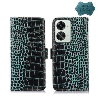 For OnePlus Nord 2T 5G Crocodile Top Layer Cowhide Leather Phone Case(Green)