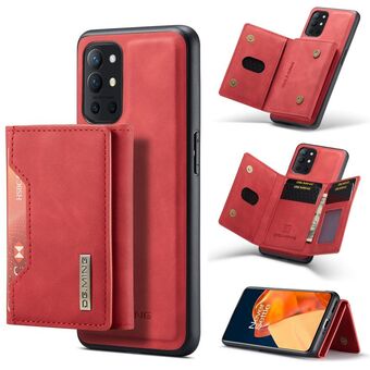 DG.MING M2 Series 3-Fold Multi Card Bag Back Cover Shockproof Case with Wallet & Holder Function For OnePlus 9R(Red) (DG.MING)