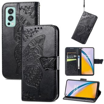 Butterfly Love Flowers Embossed Horizontal Flip Leather Case with Holder & Card Slots & Wallet & Lanyard For OnePlus Nord 2 5G(Black)